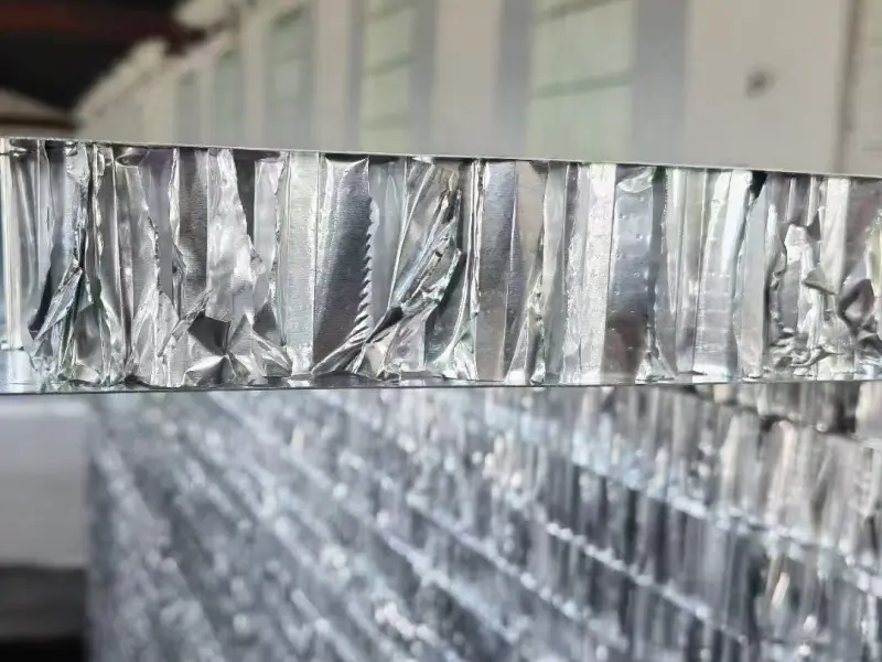 The honeycomb core is made from expanded aluminum foil bonded into hexagonal cells.